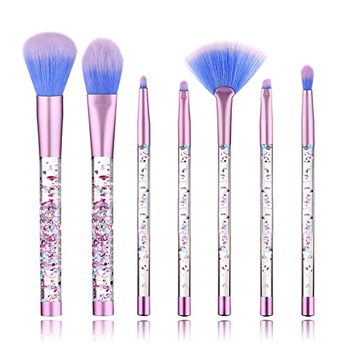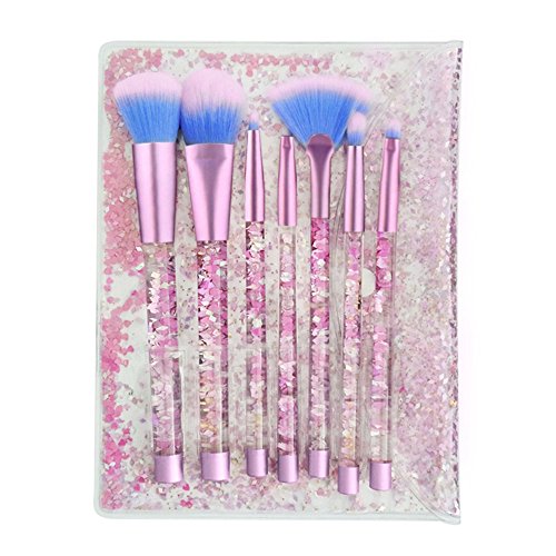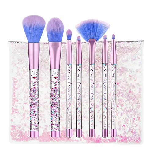 7 PCS Makeup Brushes Set + Bag, Aisikasi Liquid Sequins Synthetic Kabuki Foundation Blending Blush Eyeliner Face Powder Makeup Brush Kit Beauty Cosmetic Tools (A)