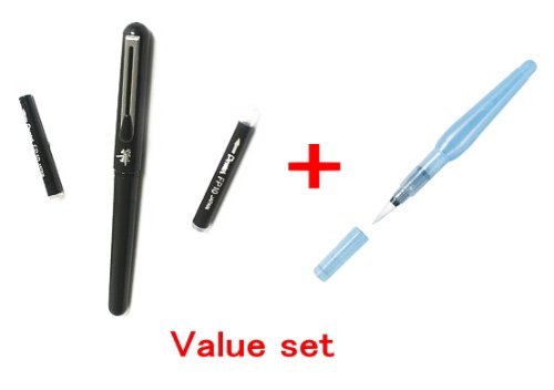 Pentel Arts Pocket Brush Pen with Refills, 1 Pen and 2 Refills & Aquash Water Brush Pen (Medium Point) Profesional Arts Value Set (With Values Japan Original Discription of Goods)