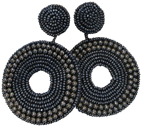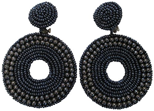 grey and faux pearl hematite colored seed bead beaded gypsy bohemian style clip earrings
