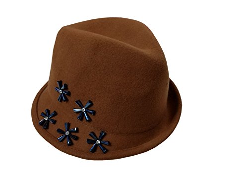 (YueLian)/Accessories/Hats/DIRECT FROM USA/YueLian Womens Snowflakes Wool Cold Weather Diamond Top Fadora Hat