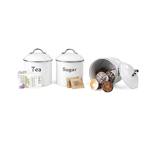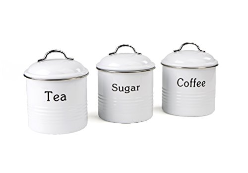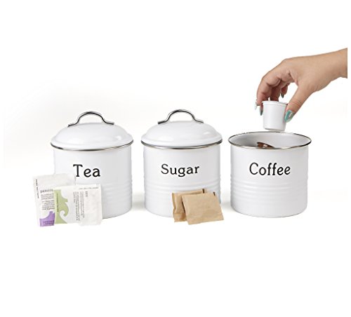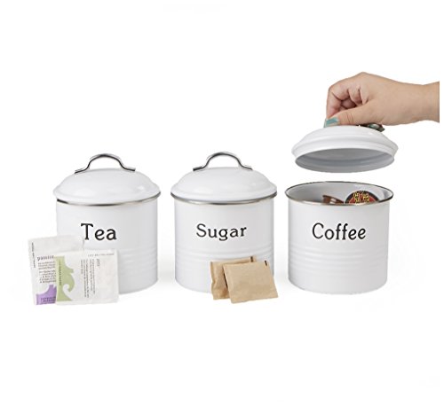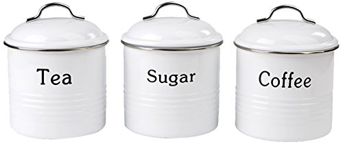 Mind Reader 3 Piece Coffee, Sugar,Tea Metal Canister Set, White