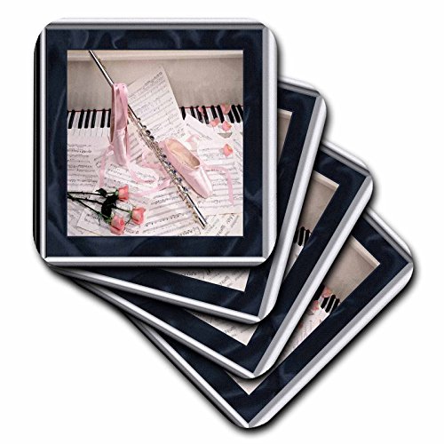 3dRose cst_14906_1 Music of Flute and Keys-Soft Coasters, Set of 4
