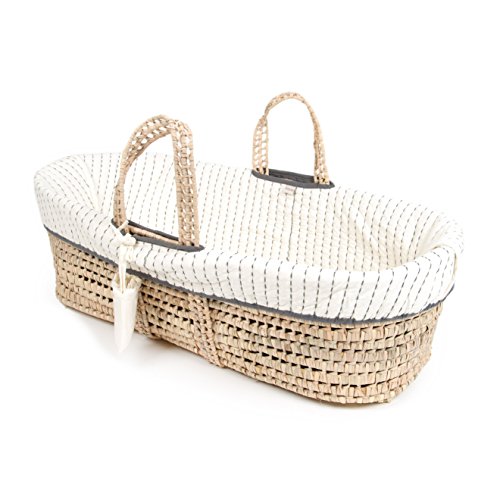 -. Title : Tadpoles Line Stitched Moses Basket and Bedding Set, Grey