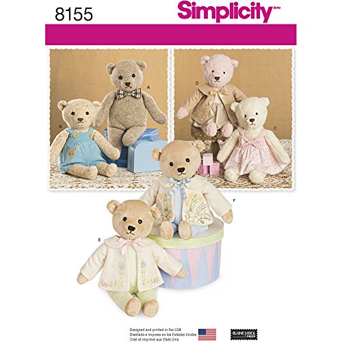 Simplicity Pattern 8155 Stuffed Bears with Clothes, One Size