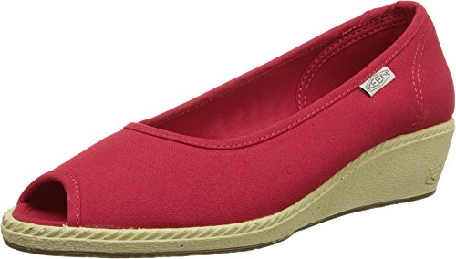 The Keen Cortona Wedge CVS Dress Shoes feature a Canvas upper with a Peep-Toe. The Man-Made outsole lends lasting traction and wear.
