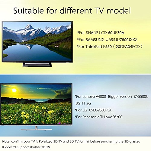 -. Binding : Eyewear -. Brand : Ingdy -. EAN : 0758958676029 -. Feature : 3D glasses support Polarized 3D TV and Real D cinema. / Suitable for different TV model such as for SHARP LCD-60UF30A, for SAMSUNG UA55JU7800JXXZ, for ThinkPad E550(20DFA04ECD, / for Lenovo V4000 Bigger version, for LG 65EG9600-CA and for Panasonic TH-50AS670C, ect. / You can experience 3D visual effect at home without going to cinema. / 3D Glasses don't need to be charged. Free from signal and wave interference. -. Label : Ingdy -. Manufacturer : Ingdy -. MPN : Ig-32629812393-IPW- 3D Glasses -. PartNumber : Ig-32629812393-IPW- 3D Glasses -. ProductGroup : Sports -. ProductTypeName : SPORTING_GOODS -. Publisher : Ingdy -. Studio : Ingdy -. Title : Ingdy(TM) PL0017 3D Glasses gafas Real 3D Virtual Reality Glasses Passive Circular Polarized For 3D Cinemas For LG SHARP SAMSUNG Panasonic -. UPC : 758958676029