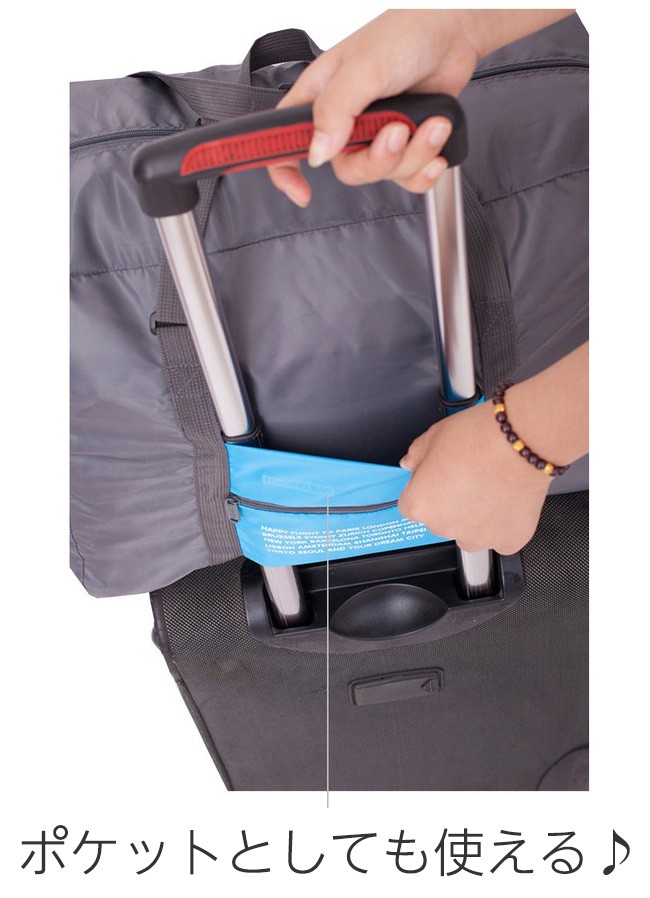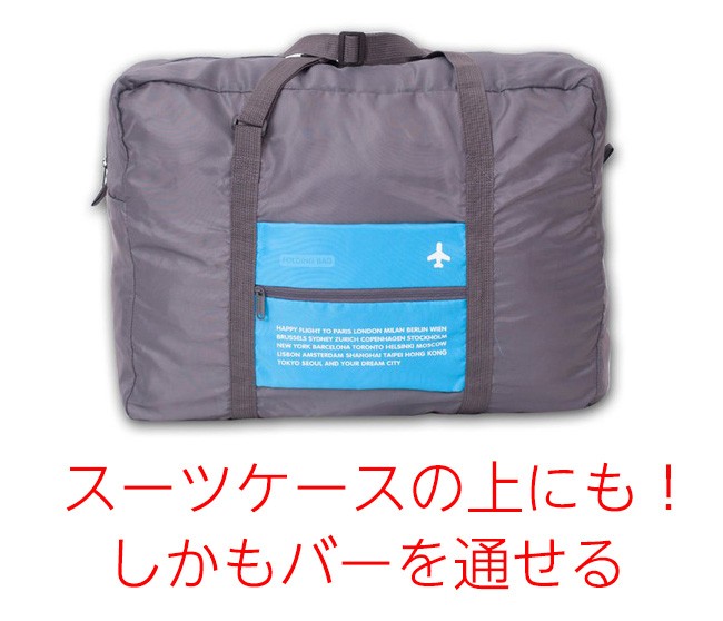 大容量の旅行バッグ。キャリーバーに通すことでキャリーの上に乗せることができます。