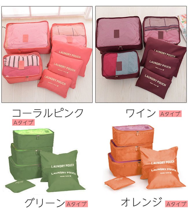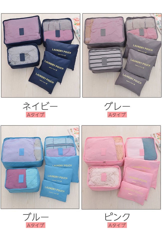 トラベルポーチ バッグインバッグ 旅行用収納ケース 6点セット♪旅行の荷物整理に大活躍のメッシュポーチ&ランドリーポーチのセット♪衣類や小物など用途別に分類でき、持ち運びに便利です。