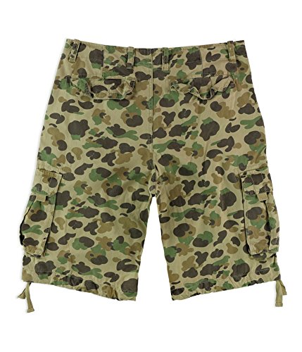 Item Description: Camo printed shorts Deep front and buttoned back pockets Large cargo pockets Drawstrings at leg openings