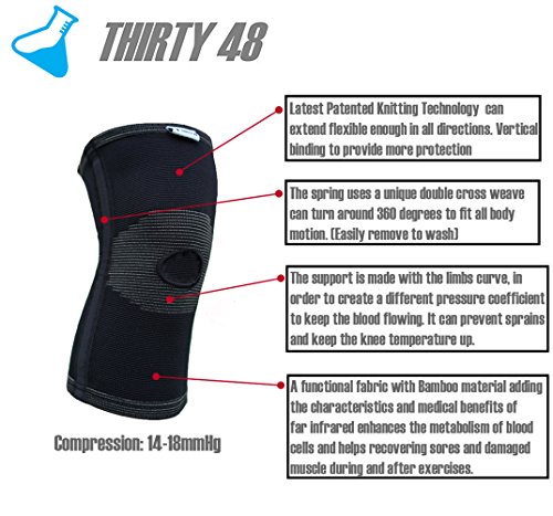 -. Feature : ✅ STABILIZE KNEECAP - Open Patella Allows the Knee to Breathe - The hole at the front reduces pressure on the kneecap and helps keep in place. Twin coil sP.R.Ing stabilizers designed on both sides to create maximum lateral support / ✅ PROVIDES GRADUATED PRESSURE - A graduated pressure system throughout the knee brace targets specific pressure points and allows for better blood circulation and temperature stability throughout. / ✅ LOWER PAIN SYMP - Utilizing the latest patented textile technology, our knee brace allows for the ultimate in comfort, breathability, and support for the most demanding situations. / ✅ JOINT PAIN IMPROVEMENT - With a flexible 360 degree four way stretch, the knee brace provides extra reinforcement for the major joints around the patella while constantly adjust for better performance during movement. / THIRTY48 IS THE MANUFACTURER - You can buy with confidence knowing that your purchase is directly from THIRTY48 Corp. Our customer service team is available 24/7 and there is no third party department you have to deal with since you are buying direct from Manufacturer. Thirty48 will NOT be responsible for any purchase made from other sellers as they are NOT selling the real Thirty48 Knee Support.