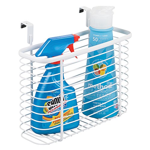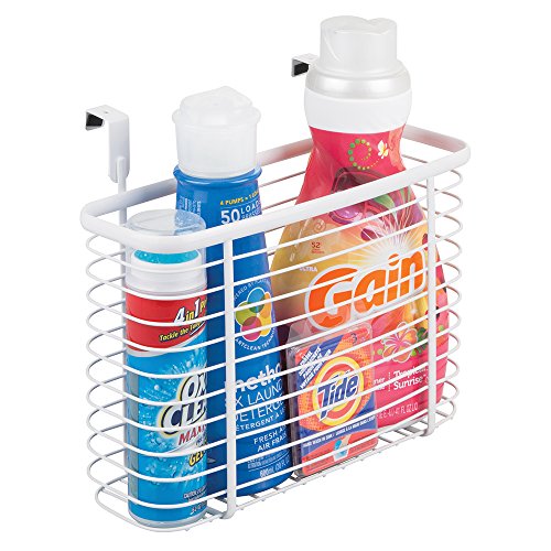 mDesign Steel Over-the-Cabinet Laundry Room Storage Basket – White