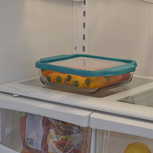 Anchor Hocking 8-InchSquare Glass Baking Dish with Teal TrueFit Lid