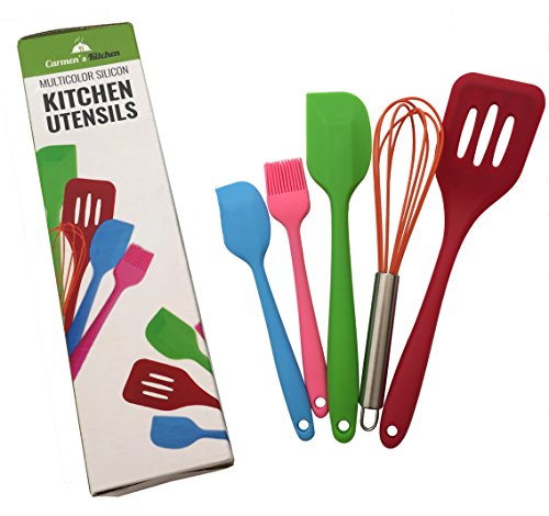 -. Feature : HYGIENIC SOLID SILICON DESIGN is carefully made with 100% BPA free, FDA grade silicon for food and cooking use. Heat resistant to high temperatures up to 450°F. They are 100% non-scratch so are safe to use in your best non-stick pans or best china mixing bowl, in lovely colours to brighten up your kitchen / TOP QUALITY, DURABLE AND EASY CLEAN with a stainless steel core, Carmen's Kitchen silicon utensils feel great in the hand, will last a lifetime, can be rinsed under a tap or put in the dishwasher, and will NEVER chip, split, stain, rot or smell / PERFECT GIFT for a wedding, house-warming, birthday, Mother's Day or for a keen cook any day. Or why not treat yourself and make your cooking experience all the more fun and enjoyable / FULL CARMEN'S KITCHEN WARRANTY: If you're not completely satisfied with your purchase of these quality cooking utensils, simply let us know and you'll be offered a FULL refund or replacement, no questions asked. Enjoy this absolutely RISK FREE purchase today by clicking the yellow 'Add to Cart button' above / BRAND NEW delicious tutti frutti colors