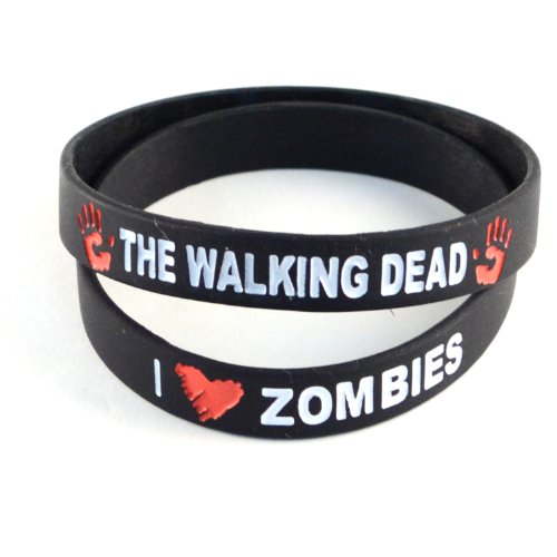 -. Feature : The Walking Dead Wristband I (Heart) Zombies / 2 Silicone Wristband / Size Medium 8" / The Walking Dead with Bloody Hand P.R.Ints / Long Lasting Color-Fill