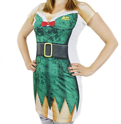 -. Brand : Faux Real -. Department : womens -. Feature : Women's Xmas Elf Dress P.R.Inted T-Shirt, Adult Size / What better way to celebrate the yuletide season then with this Women's Xmas Elf Dress P.R.Inted T-Shirt? / 100% Polyester, Imported / Machine Wash / Photorealistic design so real it will make you look twice -. ProductGroup : Apparel -. ProductTypeName : ADULT_COSTUME -. Title : Women's Xmas Elf Dress P.R.Inted T-Shirt, Adult Size