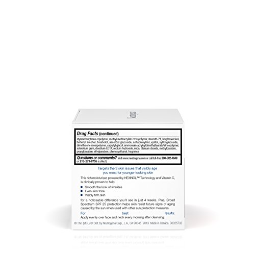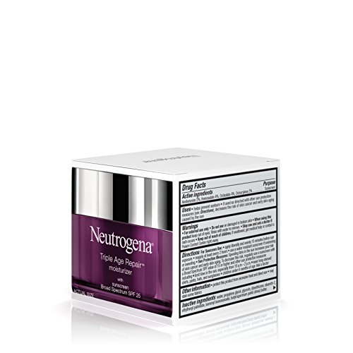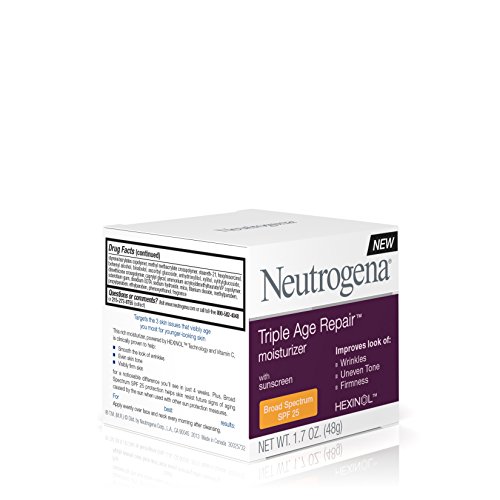 Use Neutrogena Triple Age Repair Moisturizer for younger-looking skin. This daily moisturizer targets the three skin issues that age you the most for a difference you can see in just four weeks. It contains Hexinol technology and vitamin C that are clinically proven to help smooth the look of wrinkles, even skin tone, and visibly firm skin. The formula with broad spectrum SPF 25 protection helps skin resist the future signs of aging due to the sun.
