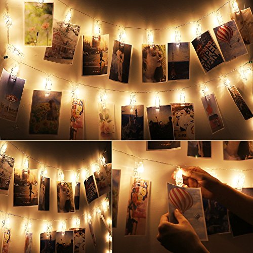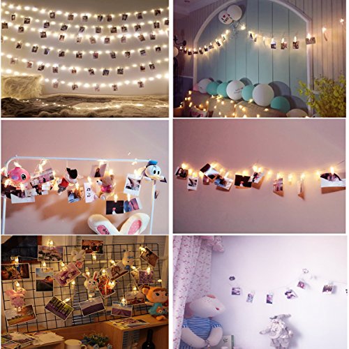 - [Record Your Beautiful Memory]: Each LED bulbs equipped with a transparent clip which can nip photo or other small Items creating excellent illumination and a warm atmosphere, perfect way to recall your sweet memory with glowing photos.