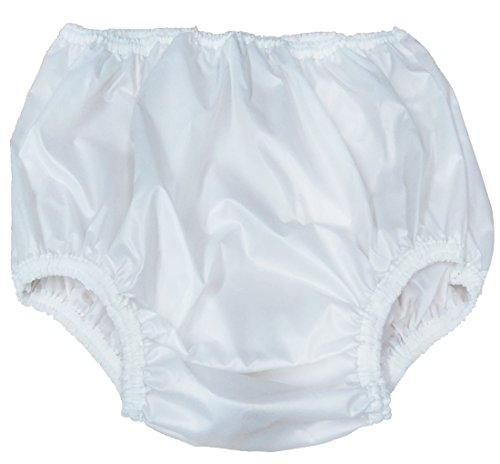 -. Feature : * IMPORTANT * - Before Purchasing It Is Important To Measure The Circumference Around Your Thighs Because It Is Critical That The Elastic Be Snug In This Area So That No Urine Can Leak Down. THESE WATERPROOF INCONTINENCE PANTS ARE ONLY INTENDED FOR ADULTS AND NOT FOR CHILDREN Especially Those Not Wearing Diapers. Please Look At The Second Image At Top Which Is Our Size Chart And Take Note Of Your Measurements. This Way You Will Know Which Size Will Be The Correct Fit For You. / THE DURALITE WATERPOOF PULL-ON INCONTINENCE PANT Is Soft And Noiseless And Does Not Create Heat Unlike Other Plastic Or Vinyl Waterproof Incontinence Pants. Better Skin Care Is The Result With Less Irritation And No Breakdown Of Skin Integrity Which Can Cause Decubitus Ulcers & Pain. Designed For All-Day & Over-Night Comfort. THE WATERPROOF INCONTINENCE PANT Is Meant To Be Worn Over Any Adult Diaper, Adult Disposable Briefs Or Adult Protective Underwear And Not Alone. / A GREAT ALTERNATIVE TO PLASTIC PANTS. NOT INTENDED TO BE USED AS SWIMWEAR. Designed For Both Men And Women, These Pants Are A Wonderful Alternative To Old Fashioned Plastic Pants And Work Great When Used As A Diaper Cover, Whether Disposable Or Reusable. MADE FROM NYLON FABRIC Duralite Nylon Fabric Is A Soft, Light-Weight, Waterproof And Stain-Proof Material That Lasts Hundreds Of Washings And Will Not Harden As Plastic Or Crack After Machine Washings As Vinyl Or Plastic Sometimes Does. / PERFECT FOR THOSE WITH ALLERGIES OR SENSITIVE SKIN The Pants Provide Excellent Resistance To Mildew, Mold, Fungus & Bacteria As Well As The Perfect Solution For Those Who Are Allergic To Plastic, Rubber, Vinyl Or PVC. Kleinert's Commissions Their Own Fabric With A Distinctive, Chemical Free Process, Making Their Duralite Waterproof Incontinence Pants Environmentally Friendly. The Quality Of This Product Will Amaze You, As It Will Outlast Any Latex, Rubber Or Plastic Pants. / MADE IN THE USA. These High Quality Pants Are Handmade In Elba, Alabama. Color: White Sizes: X-Small To 4X-Large. GARMENT CARE TIP: Some Customers Have Reported The Following To Us If Any Urine Odor Is Present After Use. They Discovered That By Adding 1/4 - 1/2 Cup Of White Vinegar Along With Detergent, They Were Able To Remove The Urine Odor. Sometimes With A Second Rinse, And They Are Free Of The Vinegar Smell As Well.