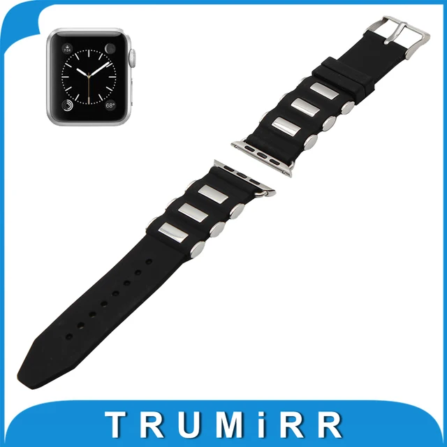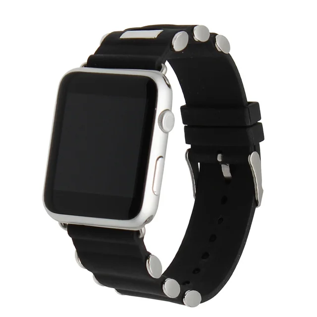 실리콘 고무 손목 스테인레스 스틸 버클 스트랩 iwatch apple watch 38mm 42 미리메터 교체 벨트 손목 팔찌 블랙