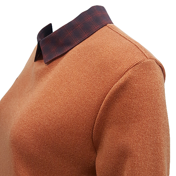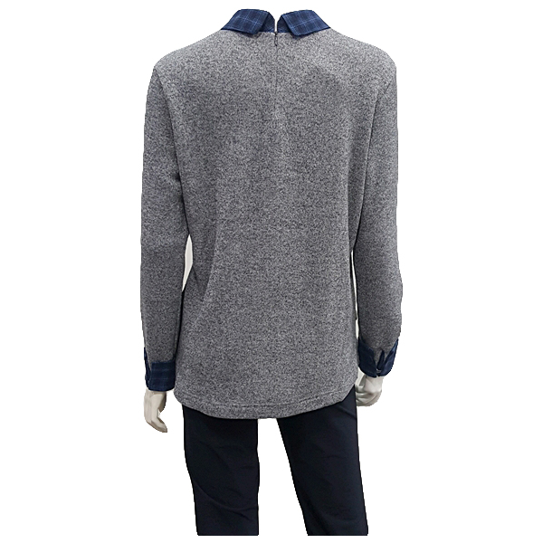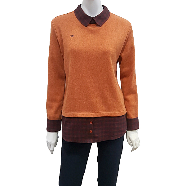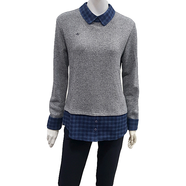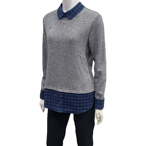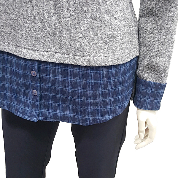 셔츠 레이어드 느낌응 연출한 캐주얼 티셔츠로 에리 소매 밈ㅌ단에 체크 소재를