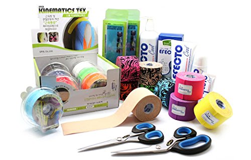 -. Feature : Water-resistant / Stronger elasticity and skin-friendly adhesive tape / Sports and therapy tape for muscle relief / Made in Korea / Each roll has a plastic box cover