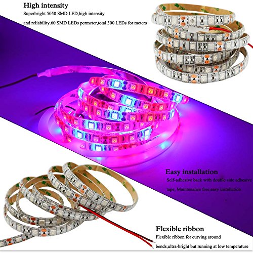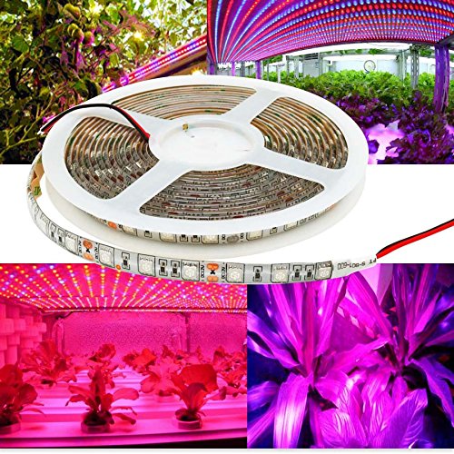 5050 Super Bright Aquarium Coral LED Strip Light 5M 300LEDs/spool Waterproof LED Plant Grow String Lights DC 12V Blue + Red Color String light (Red:Blue = 3:1)