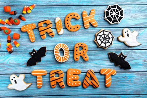 L2G 5X7ft (150cmX220cm)Trick or Treat Blue Wood Photography Backdrop Halloween Children Photography Studio