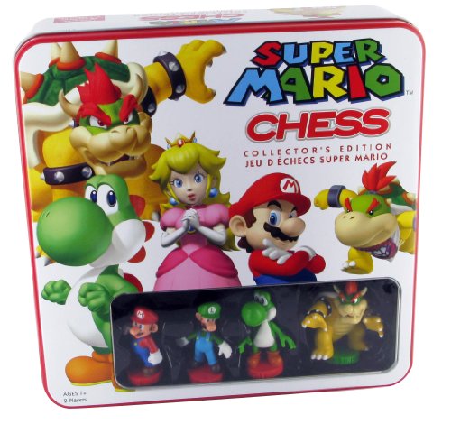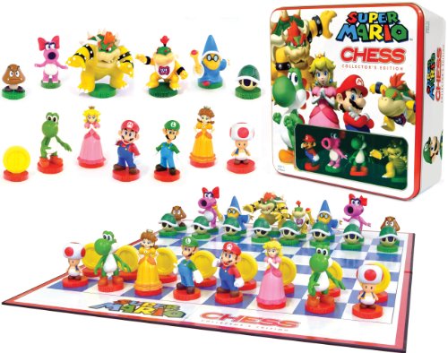 - Feature : Chess, super mario / Pick your team and take control of 32 hand-painted playing pieces / This one of a kind game is as much fun to play as it is to display / Familiar Chess game plays with new, Super Mario-themed chess pieces / Includes Mario, luigi, princess peach, yoshi, toad, 1-up mushroom, bowser, bowser jr, birdo, goomba, hammer bros, and magikoopa