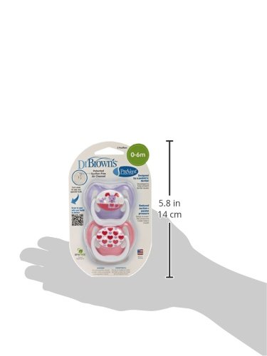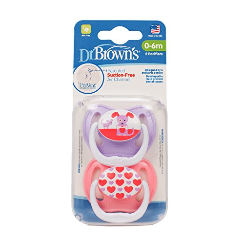 Designed by a pediatric dentist, Dr. Brown's PreVent Orthodontic Pacifier has a patented Suction Free Air Channel that helps reduce suction and palatal pressure. The soft, suction release bulb spreads wider as baby sucks for low pressure comfort. PreVent helps to lower the pressures that can create dental issues, such as crossbites. The thin stem design is minimally intrusive on baby's mouth. There are three stages of pacifiers available. Stage one is for babies ages 0-6 months.Feature