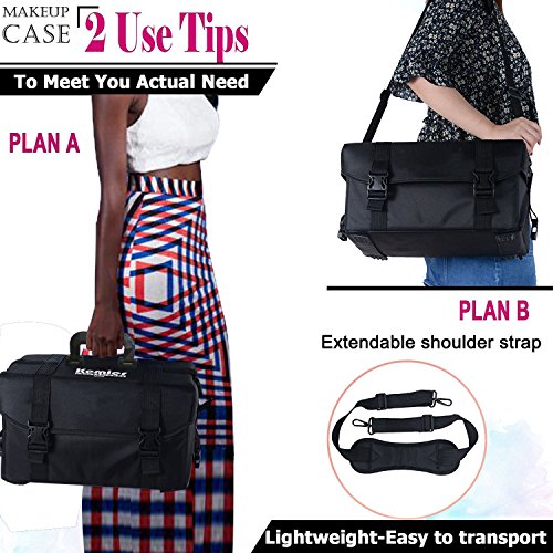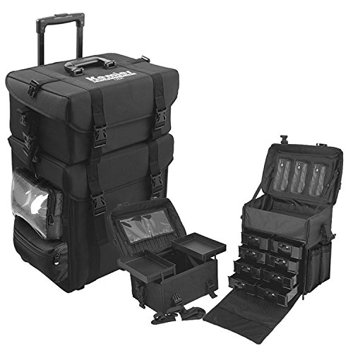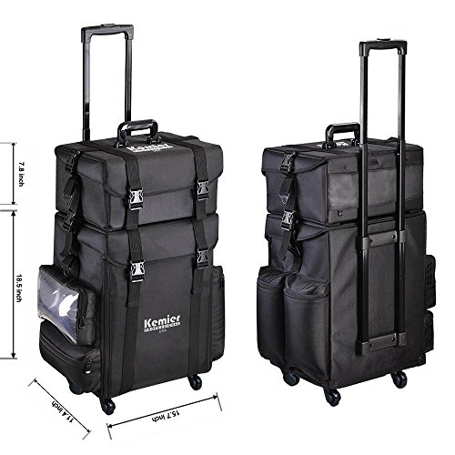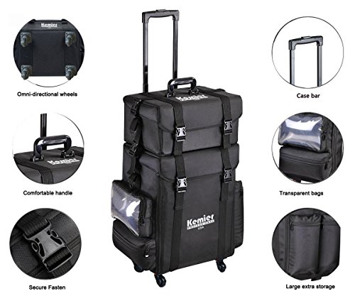 Kemier studio makeup case Omni-directional wheels 2 in 1 Professional Soft Sided,Removable,Artist Rolling Makeup Train Case ,Cosmetic Organizer...