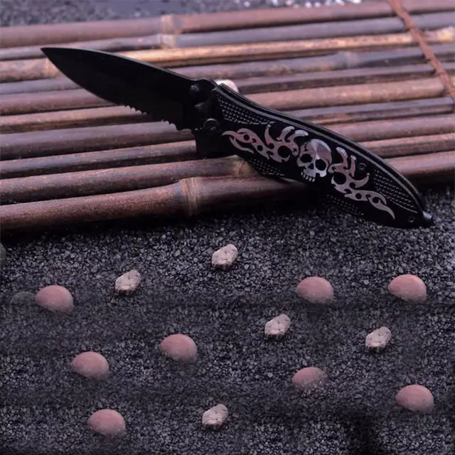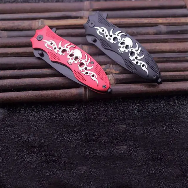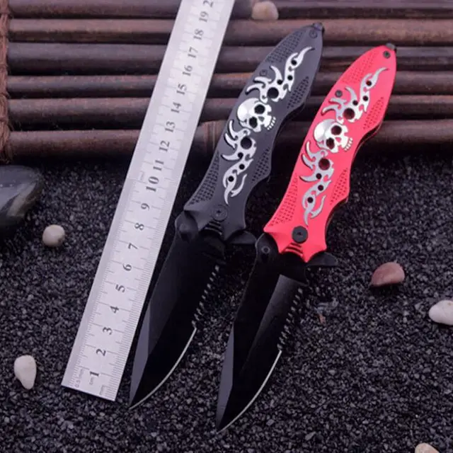 [해외] 미니 해골 핸들 야외 접는 칼 다기능 포켓 등반 생존 전술 캠핑 도구 차가운 스틸 진짜 칼