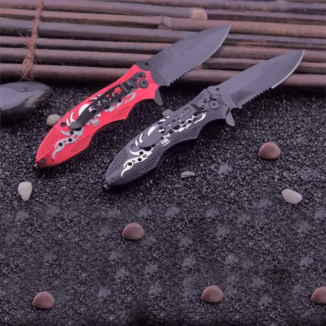미니 해골 핸들 야외 접는 칼 다기능 포켓 등반 생존 전술 캠핑 도구 차가운 스틸 진짜 칼