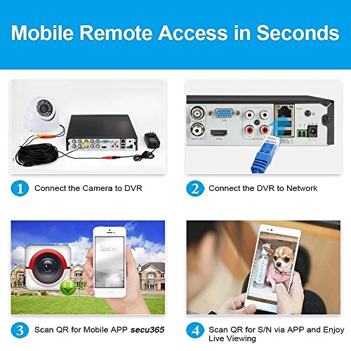 -. Feature : 4 CHANNEL COMPLETE RECORDING DVR KIT / EASY AND QUICK INSTALLATION AHD VIDEO / REMOTE ACCESS ON SMARTPHONE/TABLET / 4 DOME CAMERAS DAY&NIGHT MODE