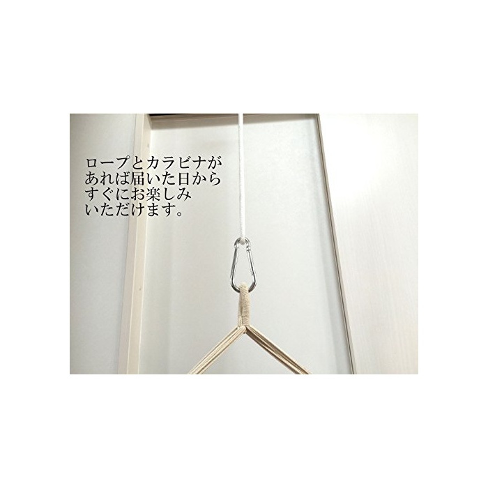 해먹(hammock) 체어 베이직+장치하는 것으로(에) 필요한 로프(통상¥810)와 카라비너(통상¥1,620)가 붙었게 된 스타터 세트입니다.산 그날로부터 즐길 수 있는다.카라비너는 완강하고 다루기 쉬운 특대 사이즈를,로프는 10mm의 고내구 나일론 로프에 내하중은 약900kg(정하중)고, 비나 자외선,마찰열로도 높은내 후성을 든 해먹(hammock) 전용 로프입니다.(카라비너와 로프는 당사의 오리지날품과 됩니다)