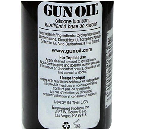 -. Binding : Health and Beauty -. IsAdultProduct : 1 -. Label : Gun Oil -. Manufacturer : Gun Oil -. PackageQuantity : 1 -. ProductGroup : Health and Beauty -. ProductTypeName : HEALTH_PERSONAL_CARE -. Publisher : Gun Oil -. Studio : Gun Oil -. Title : Gun Oil Silicone Based Personal Lube Lubricant Fortified with Special Botanicals Safe for Toys. (+ Free Lubricant Mestyle) : Net Wt 2 Oz or 59 Ml