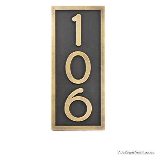 -. Title : Frank Lloyd Vertical Customized Home Number Plaque 6.5x15 - Handcrafted by Atlas Signs and Plaques - Raised Brass Metal Coated