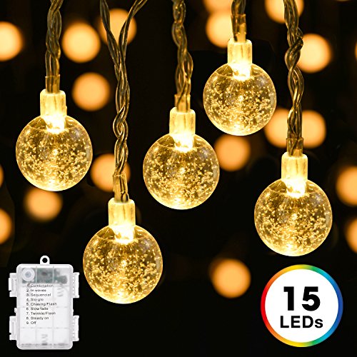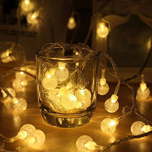 - WARM CRYSTAL BALLS ADD A COZY TOUCH: Featuring 15 cute crystal balls with warm white glow, these Battery Powered String Lights will add a cozy touch to any settings and occasions as soon as you turn them on.