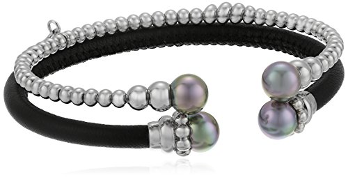 Set of 2 steel and pearl cuff bangle bracelets
