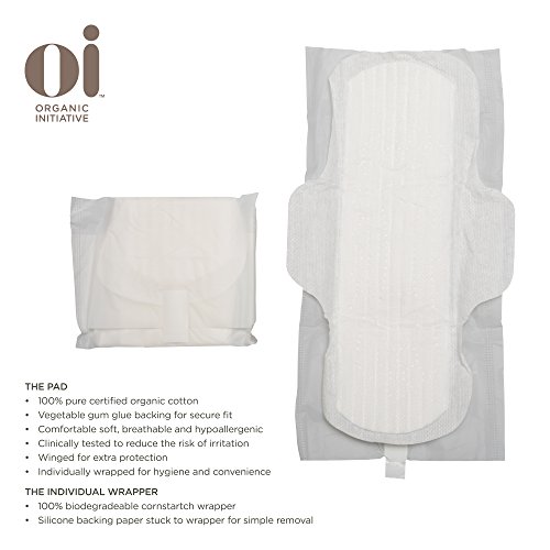 Oi Organic Cotton Ultra Thin Pads with Wings offer maximum absorption, comfort and protection for women and girls. These pads, and all of Oi's feminine hygiene products, are made with 100% pure certified organic cotton, keeping your body safe and the earth clean. Wrapped individually. Regular Super.