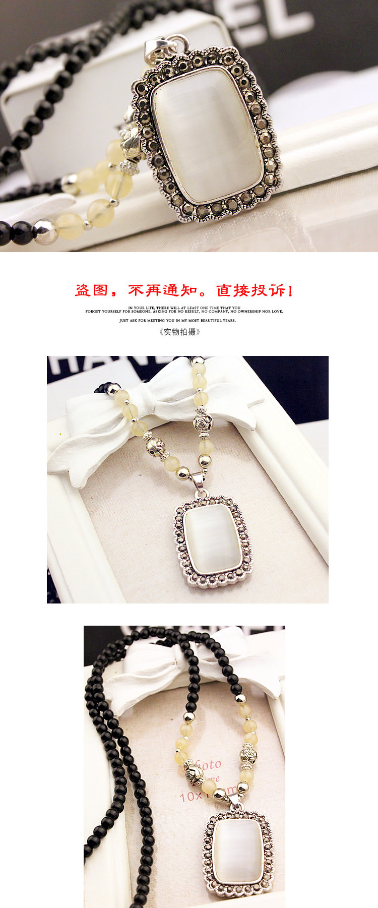 Fine workmanship, inlaid opal oh really! Chain of beads are resin material,