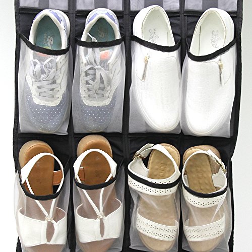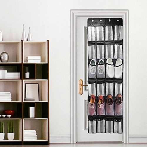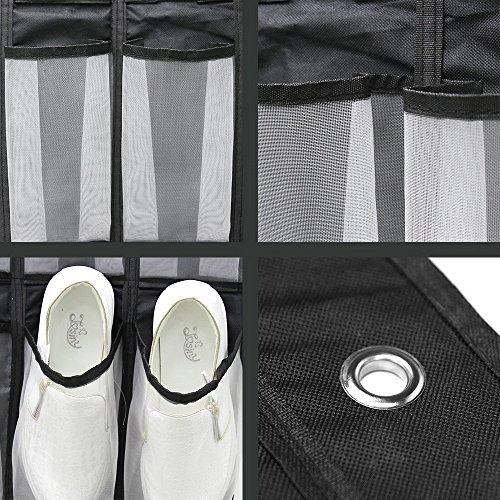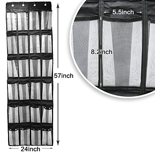-. Feature : Exquisite Craft: Non-woven processing and double stitching between each pocket makes the Shoes Holders practical,sturdy / Super Convenient: Hanging by 4 strong metal hooks over standard-size doors, lightweight can be fold very small for travel. / Waterproof And Mildew: back and top of Shoe Hanger are made of Environmental 600D breathable thick mesh material,easy to clean. / Save More Space: This robust organizer has 24 breathable pockets that can hold men's shoe sizes size 16 and bigger. / Multi Functions: It is also a perfect hanging storage for storing toys ,iphones,make-up,belts,scarves,knitting yarn,cleaning products,craft items