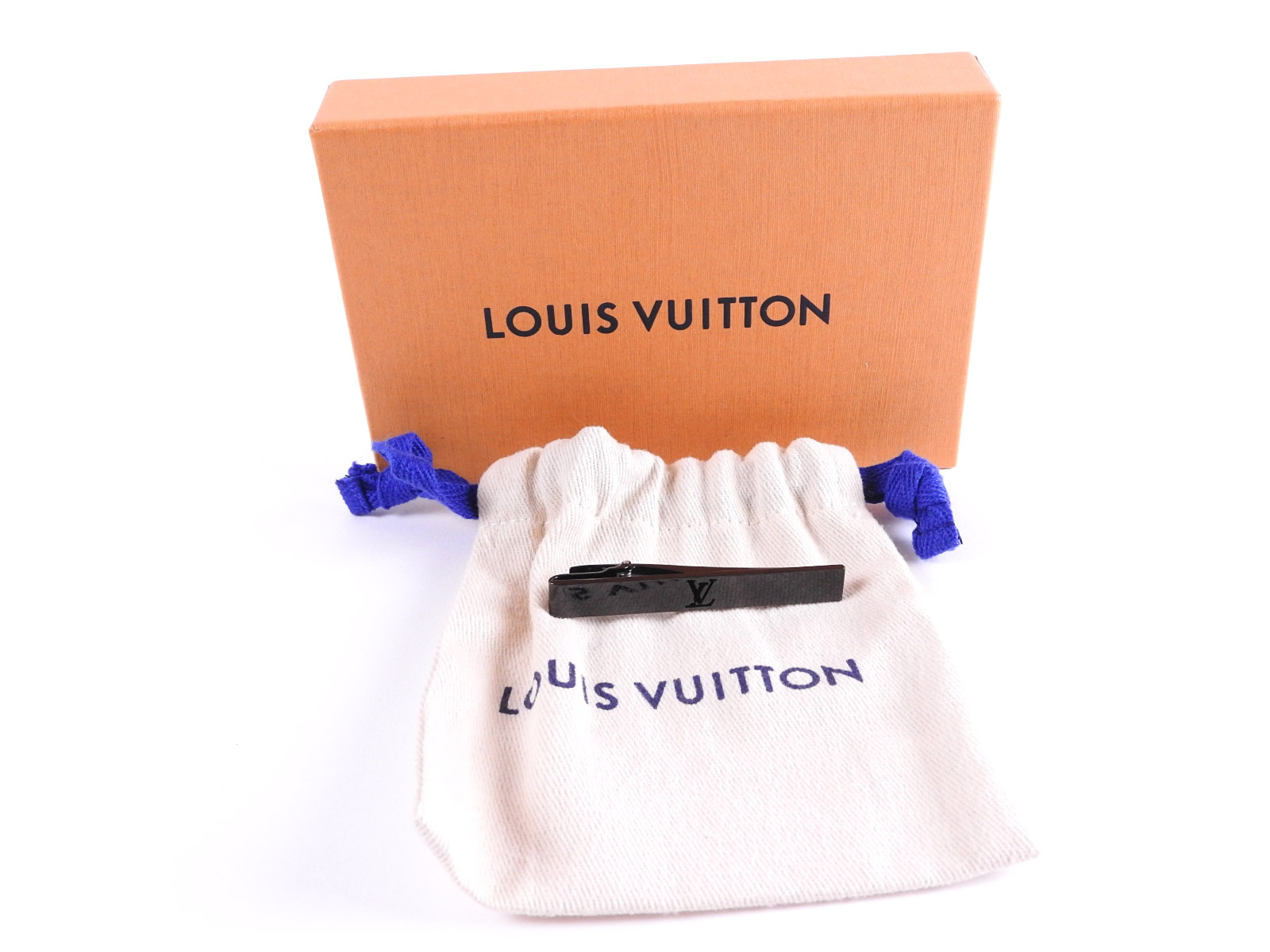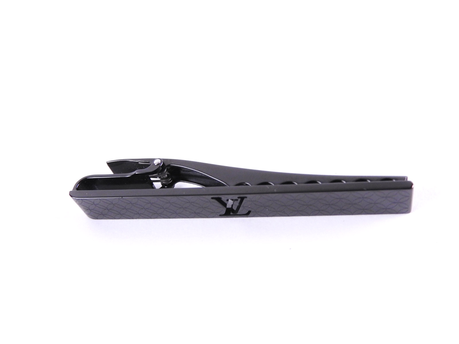 Auth LOUIS VUITTON Unused Pansu Cravat Champs Elysees Tie Pin Clip Steel Lacquer Black M65045 A-7617