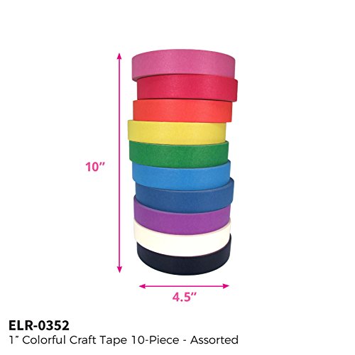 ECR4Kids Decorative Children's Craft Tape, Assorted Colors, 1" x 60 Yards/Roll (10-Pack)