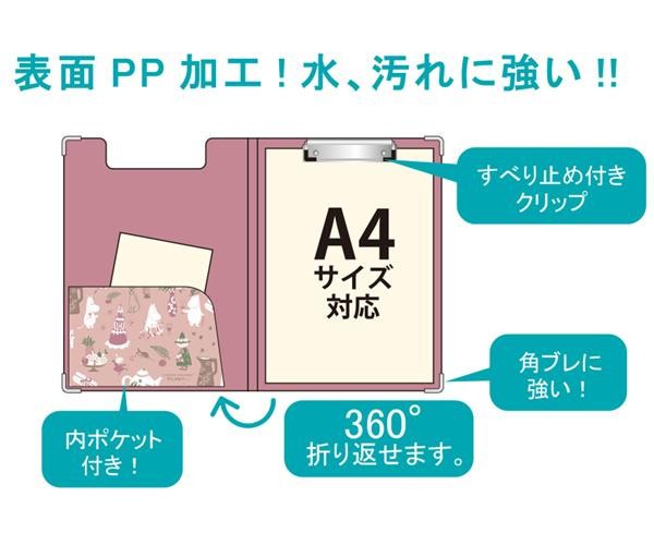 A4サイズ対応、360度折り返せて書きやすい!!表面にPP加工を施し、水・汚れに強くしております。クリップには滑り布止め、角潰れ防止にスチールガードを取り付けています。内側ポケット付き♪ |