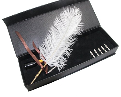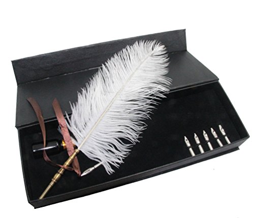 -. Feature : classical European-style quill pen / Ostrich White Feather / item includes:1 pen,1 bottle 10cc ink,5 pcs different sizes pen nibs,gift package / beautiful,creative and practical gifts for friends,kids