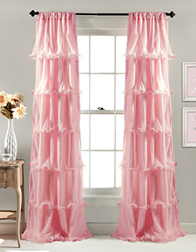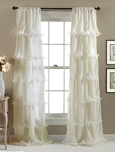 Cascades of sheer ruffles on smooth microfiber, soft hue and flowy silhouette make Nerina window panels stand out from the rest. 3" rod pocket slides onto curtain rod for quick installation.