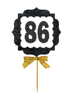 86th Birthday / Anniversary Gold Ribbon Hand Crafted Novelty Cupcake Decoration Toppers / Picks -12ct