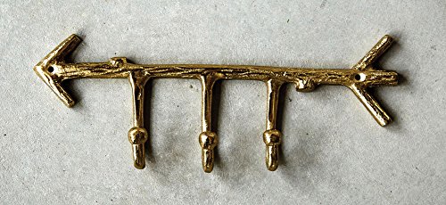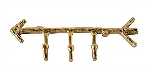 Creative Co-Op DA6537 Aluminum Arrow Shaped Wall Hanger with Hooks and Gold Finish