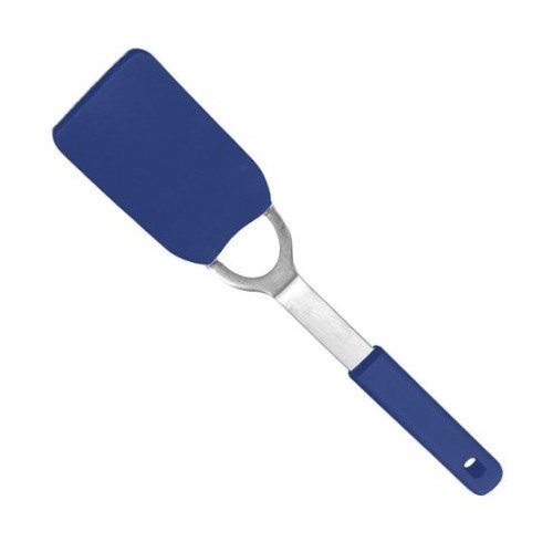 Studio : RSVP Publisher : RSVP Binding : Kitchen Product Description Turn, flip, and serve with this RSVP small flexible spatula. This mini spatula has a stainless steel handle with a soft santoprene grip for the ultimate comfort in kitchen accessories. It is heat-safe to withstand temperatures up to 400 degrees Fahrenheit and is ideal for non-stick cookware and bakeware. This is a great kitchen accessory to use when serving those perfect brownies made fresh and served hot, right from the oven. 7-1/2" L x 2" W x 3-1/4" H 0