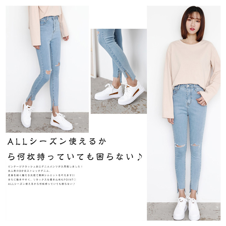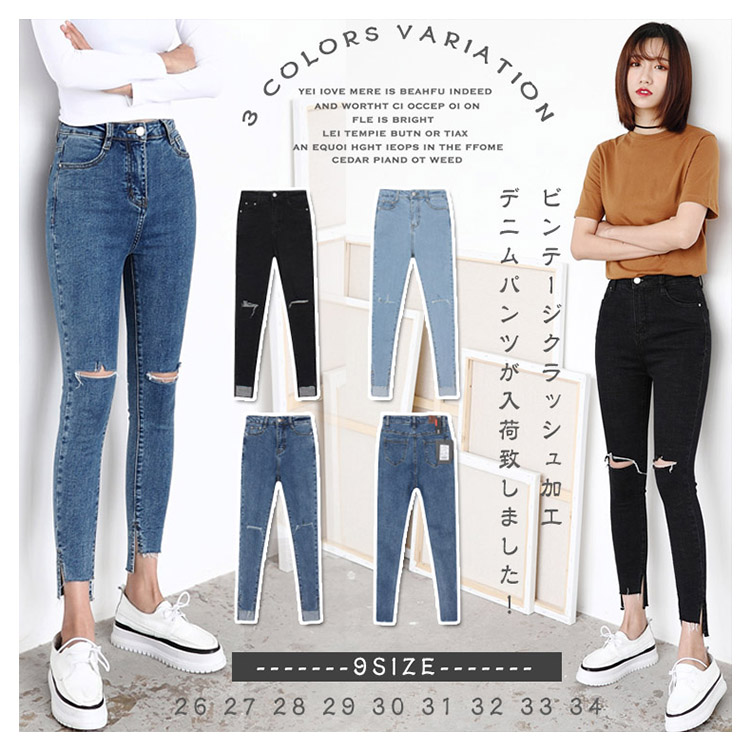 | ビンテージクラッシュ加工デニムパンツが入荷致しました!大人気の9分丈ストレッチデニム。足首を細く魅せる丈感で美脚シルエットを叶えます!!さらに動きやすく、リラックスな履き心地もPOINT◎ALLシーズン使えるから何枚持っていても困らない♪ | |